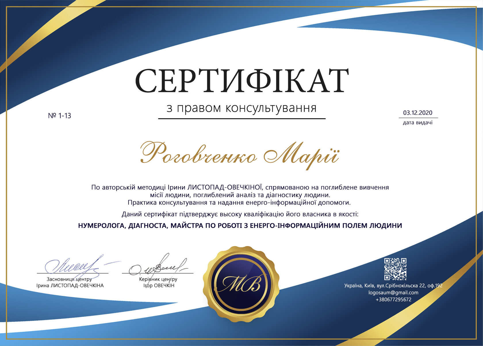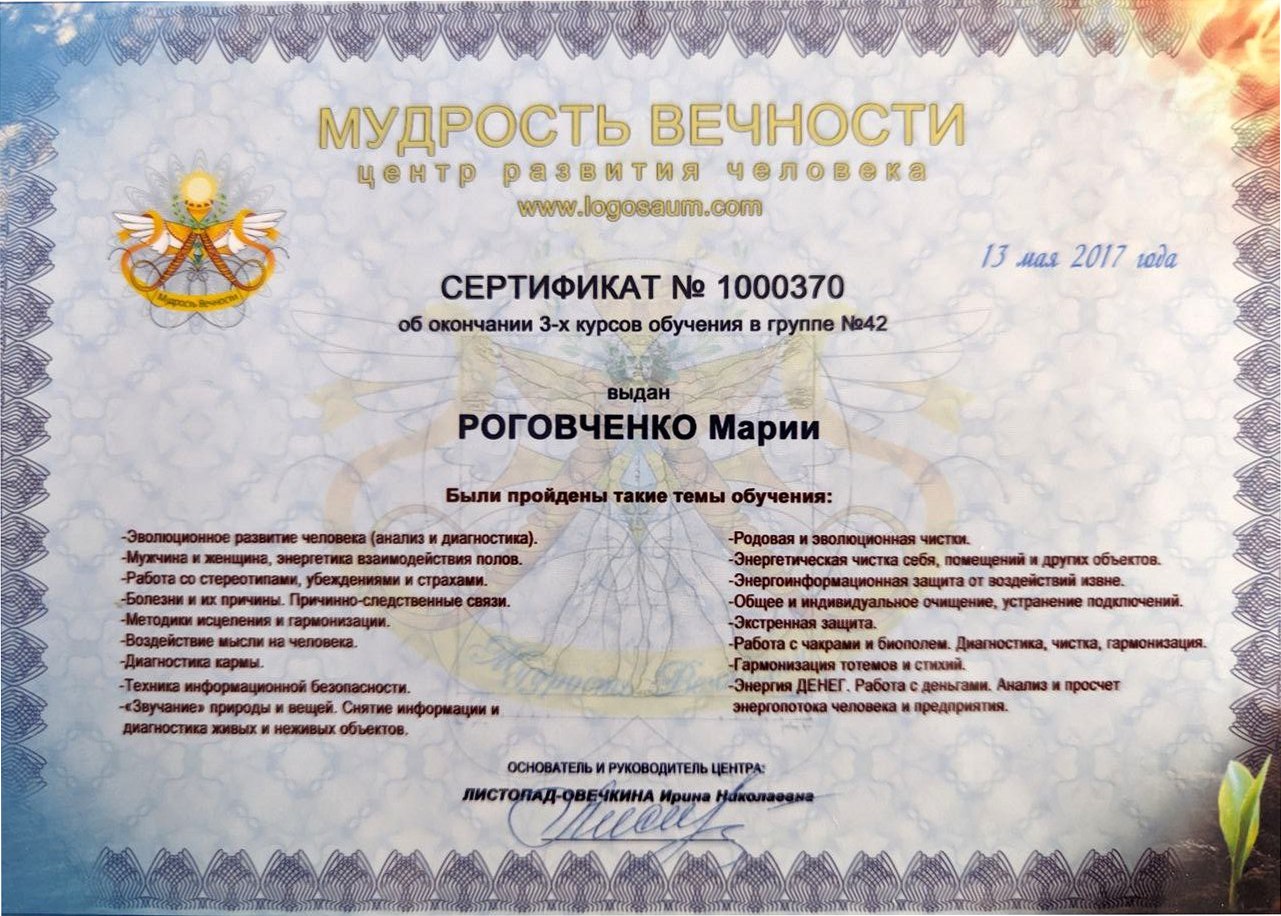 Марія сертифікований консультант центру "Мудрість Вiчності".