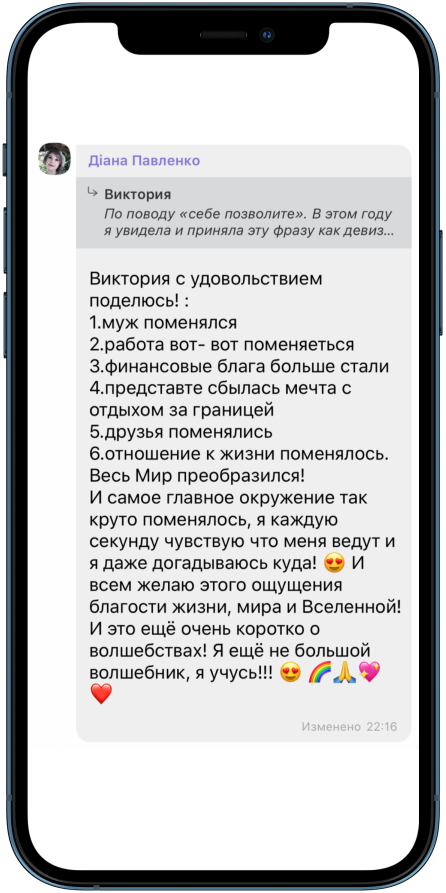 С вами на связи Ирина в личном чате. Есть вопросы по темам или практикам - пишите. Она всегда ответит.